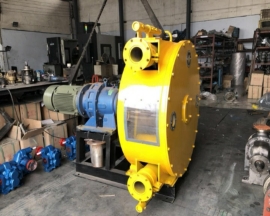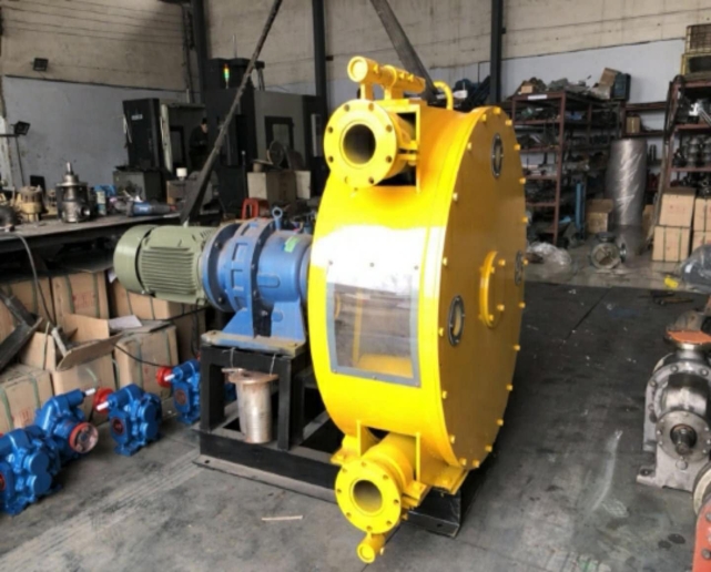 工業(yè)軟管泵吸收了國外先進(jìn)技術(shù)而開發(fā)的一種新型的、多功能、多用途工業(yè)泵。主要有泵體、回轉(zhuǎn)架、擠壓輪、復(fù)原輪、增強(qiáng)軟管和驅(qū)動(dòng)系統(tǒng)組成。增強(qiáng)軟管在泵體內(nèi)呈U型布置,當(dāng)回轉(zhuǎn)架帶動(dòng)擠壓輪回轉(zhuǎn)時(shí),軟管受到擠壓輪的積壓發(fā)生彈性變形,在吸入口形成負(fù)壓吸入漿料,通過擠壓輪的推送漿料從排出口排出,形成漿料的壓力輸送,主要用于粘稠漿料遠(yuǎn)距離輸送、計(jì)量泵送、壓力注(灌)漿、材料的輸送噴涂等、它徹底擺脫了傳統(tǒng)泵葉輪和軸密封的運(yùn)行模式,對(duì)粘度大、腐蝕性大、流體雜質(zhì)大的介質(zhì)輸送具有極大的優(yōu)勢(shì),是和傳統(tǒng)輸送泵的截然不同的原理,應(yīng)用范圍廣。