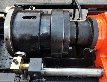 夾緊鋼筋: 將鋼筋插入滾絲機(jī)夾鉗中,確保端頭頂?shù)轿?,夾緊機(jī)構(gòu)自動(dòng)鎖死。